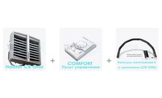 Готовый комплект для быстрого монтажа и эксплуатации: тепловентилятор CR One в комплекте с консолью (кронштейном) и с пультом управления. Один пульт может управлять до 4-х шт. тепловентиляторов CR One (более 4-х нельзя).