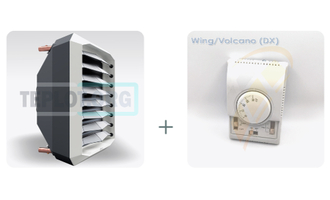 Готовый комплект для быстрого монтажа: Волкано РУ Мини АС с пультом управления, с креплением (кронштейн для тепловентилятора) и с комплектом шлангов (2 шт по 1м, соединение гайка-гайка).